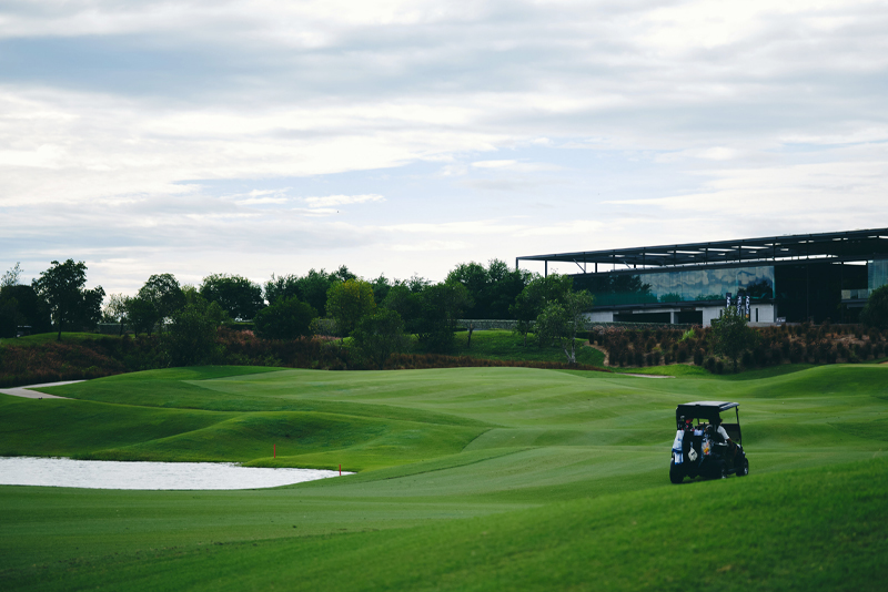 広大で丁寧に整備されたフェアウェイとグリーンは、まるで絵画のように美しい。芝は日本のものとはやや異なり、プレー感覚にも違いが感じられる。1名乗りのゴルフカートと、1人ずつにつく専属キャディの存在も、非日常のラグジュアリーを演出。言葉の壁を感じさせないキャディの気配りは、タイゴルフならではのホスピタリティを感じさせた。
