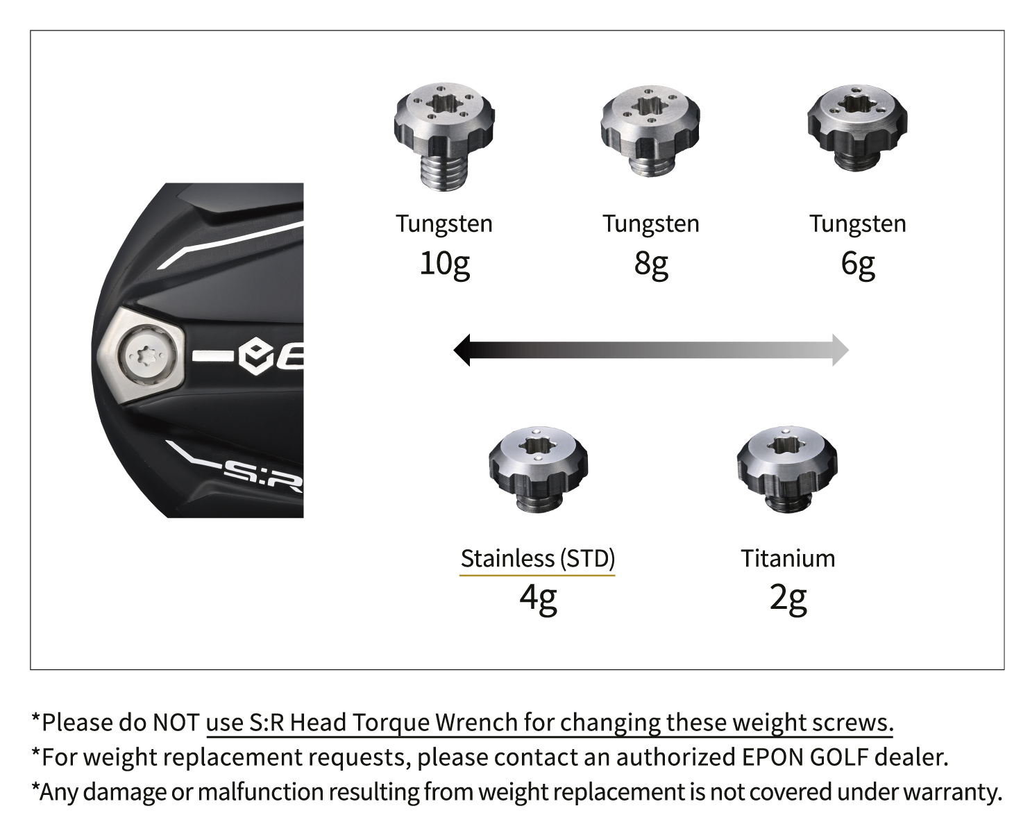 ※2 Variable weight screw produces different head weights (-2g to +6g)