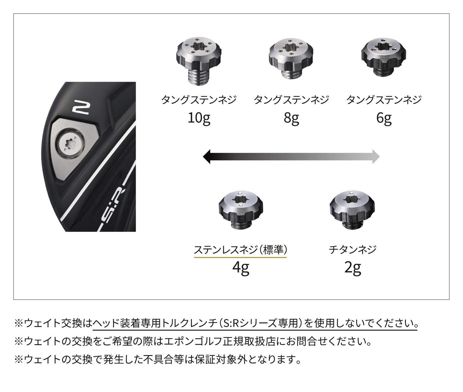 ※2 オプションでウェイトネジを交換することで、重量の調整ができます(-2g ~ +6g)。