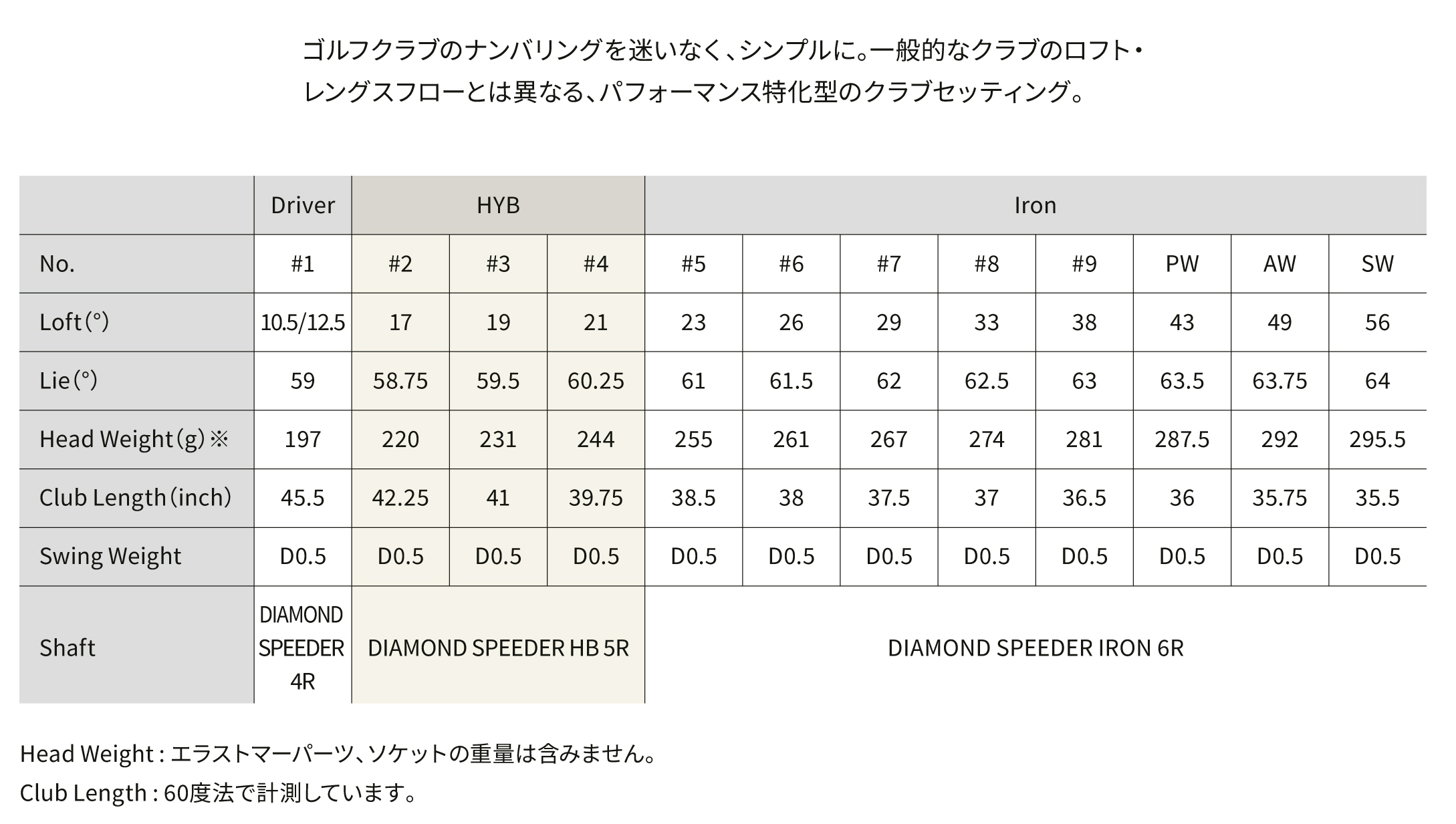 Club length : 60度法で計測しています。
