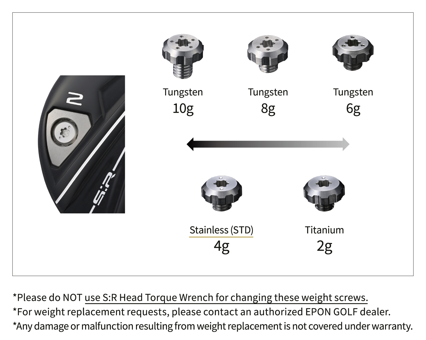 ※2 Variable weight screw produces different head weights (-2g to +6g)